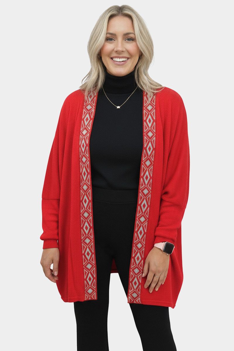 Capa abierta, manga larga, cuello v con detalle en perilla para mujer. Tejido tratamiento 100% Cachemir Feeling, increíblemente suave, térmica e hipoalergénico. Hecho por manos colombianas