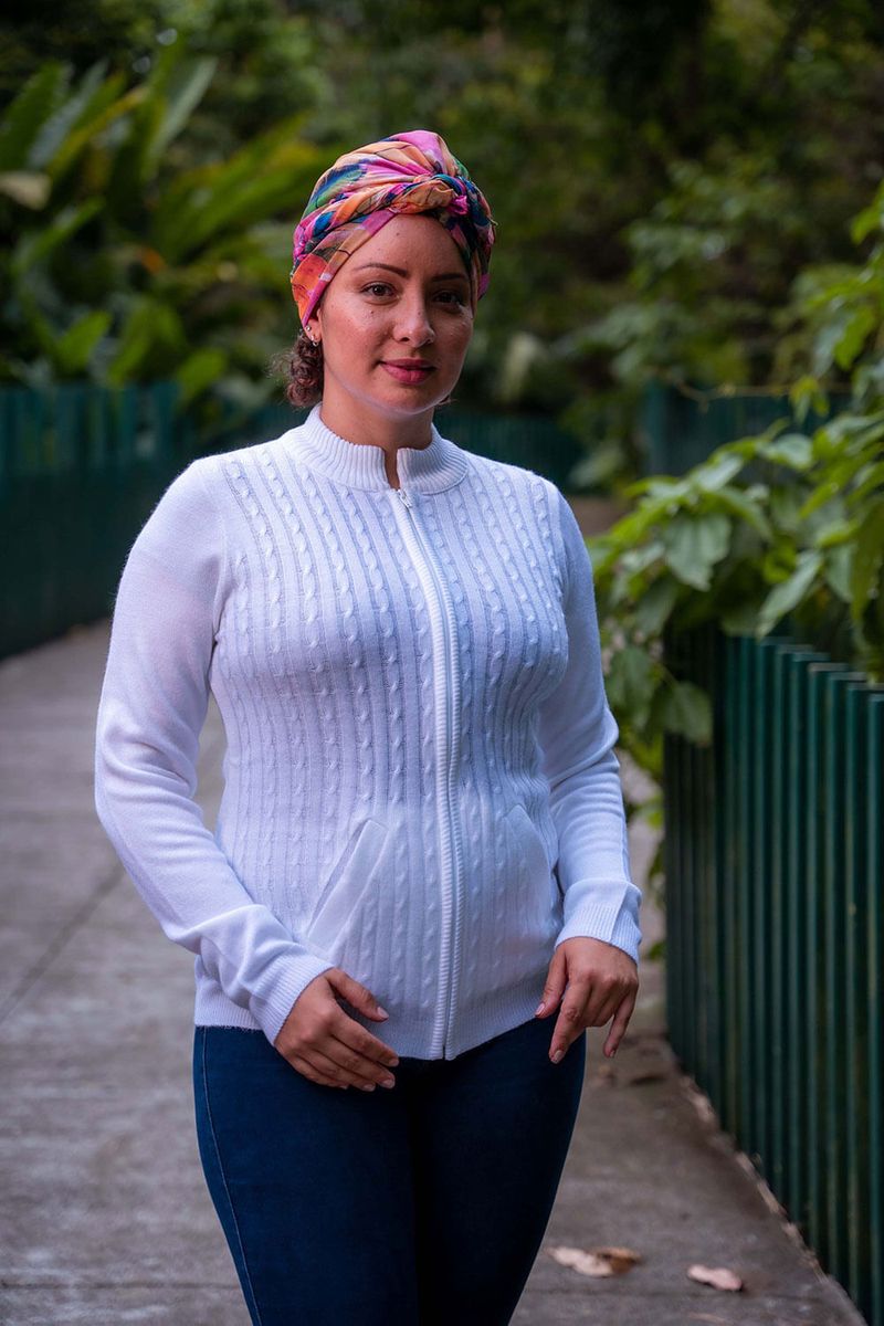Suéter trenza cuello alto, manga larga con cierre y bolsillos para mujer.Tejido tratamiento 100% Cachemir Feeling increíblemente suave, térmico e hipoalergénico. disponible en hermosos colores.Hecho por manos colombianas